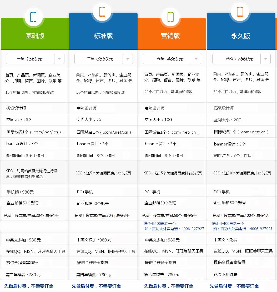 定製(zhi)網站套餐
